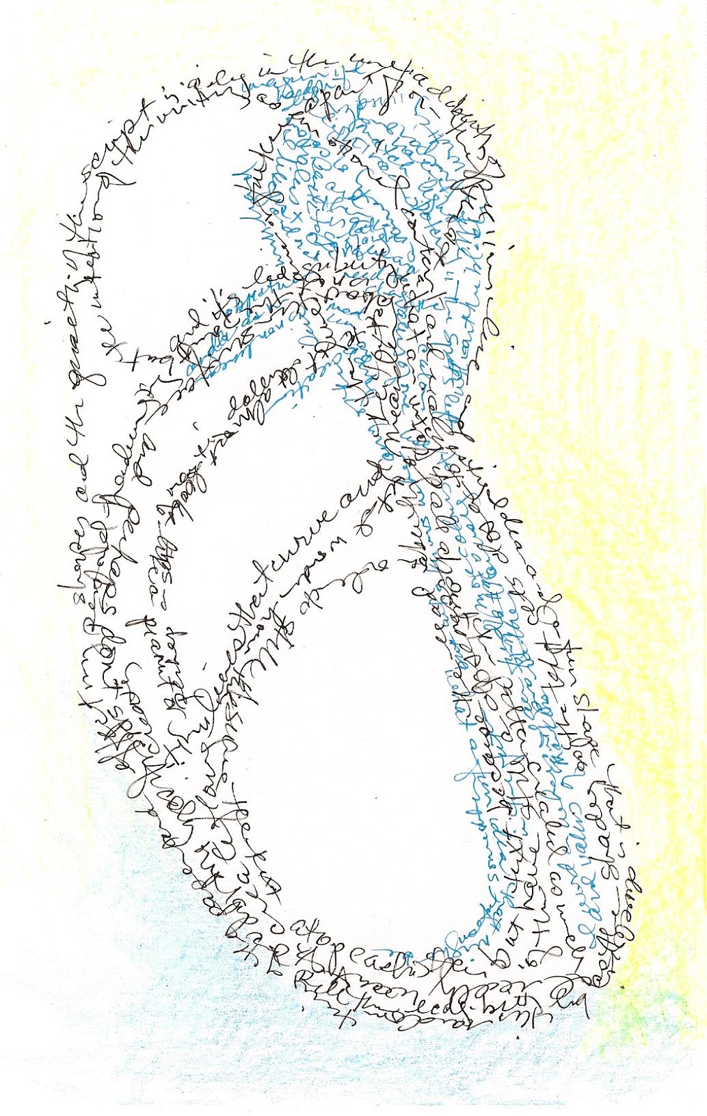 While watching the DVD I was inspired to do some auto writing or free writing – done to create a pattern. Here are some examples.