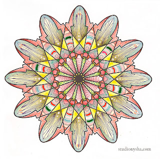 Mandalas by nature have a radiating quality. In illustrating or Zen Tangling these mandalas I am trying to give a greater sense of radiating or pulsing. Some are more successful than others. Some, like this seem to take on another feeling altogether. I like it. Calm with a hint of heat, just like the weekend was.