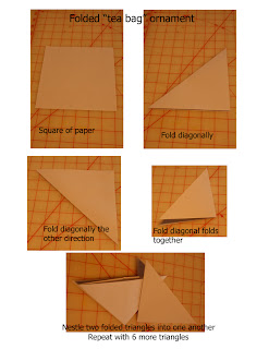 I watched a video on “tea paper folding” on YouTube. Basically it is diagonal folds creating a dimensional triangle that can then be nestled into another…